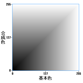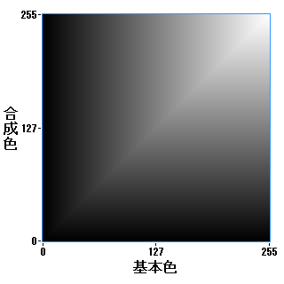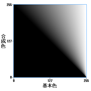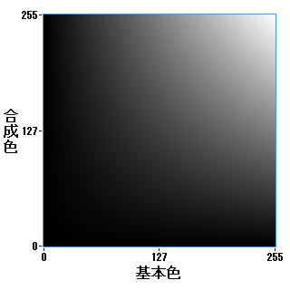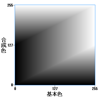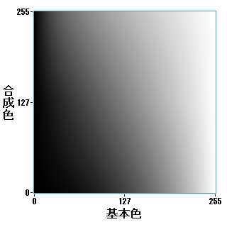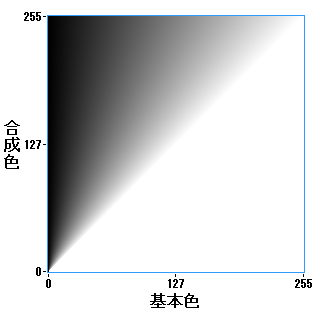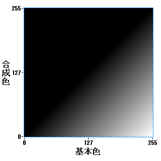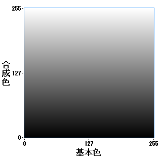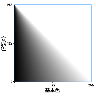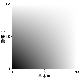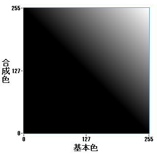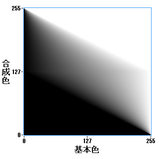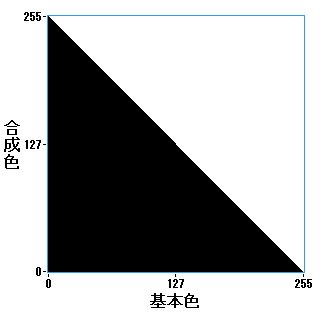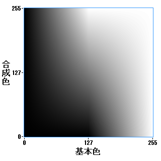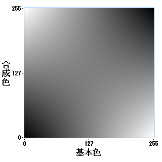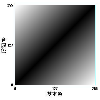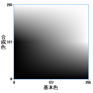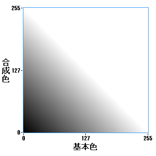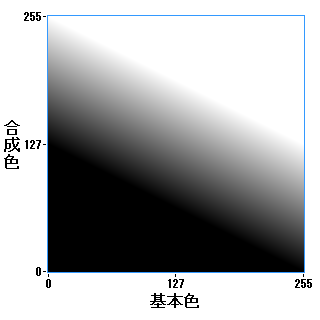 - 結果色 = 基本色 - ~合成色 = 基本色 + 合成色 - 1