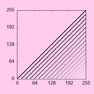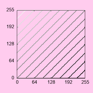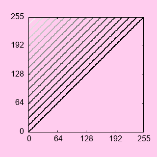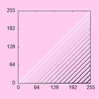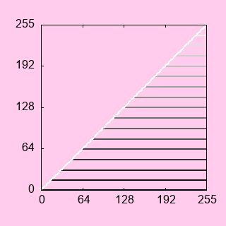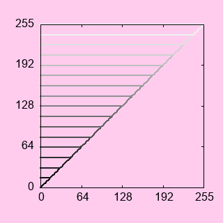 - ここで言う「輝度」は、人間が目で見たときの色による感度の違いが考慮されるため、例えば G=255 の純色と B=255 の純色だったら、前者の方がより輝度が大きいと判断されます
