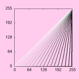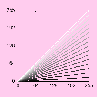 ちなみに、ガンマ補正を考慮していないことの弊害として、レイヤーを合成したり色を混ぜたりしたときに、結果色が本来よりも暗くなってしまうという問題があります。わかりやすい例だと、ペイトンソフトでグラデーションをかけると中間色がくすむということが知られていますが、この現象の原因の一つが、ガンマ補正を考慮していないことに起因します(ほかにも原因はあります。GIMP ではグラデーションツールの設定によりこの現象を回避できます)。