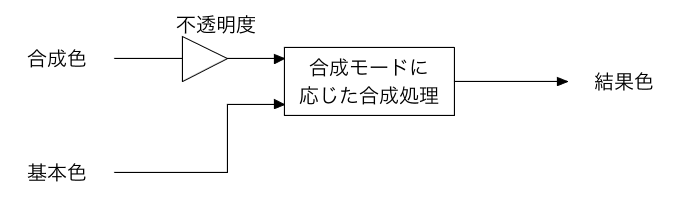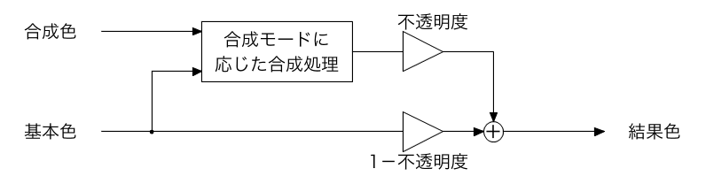 結果色 = 基本色 × ~不透明度 + 〈合成色を完全不透明とした場合の結果色〉 × 不透明度